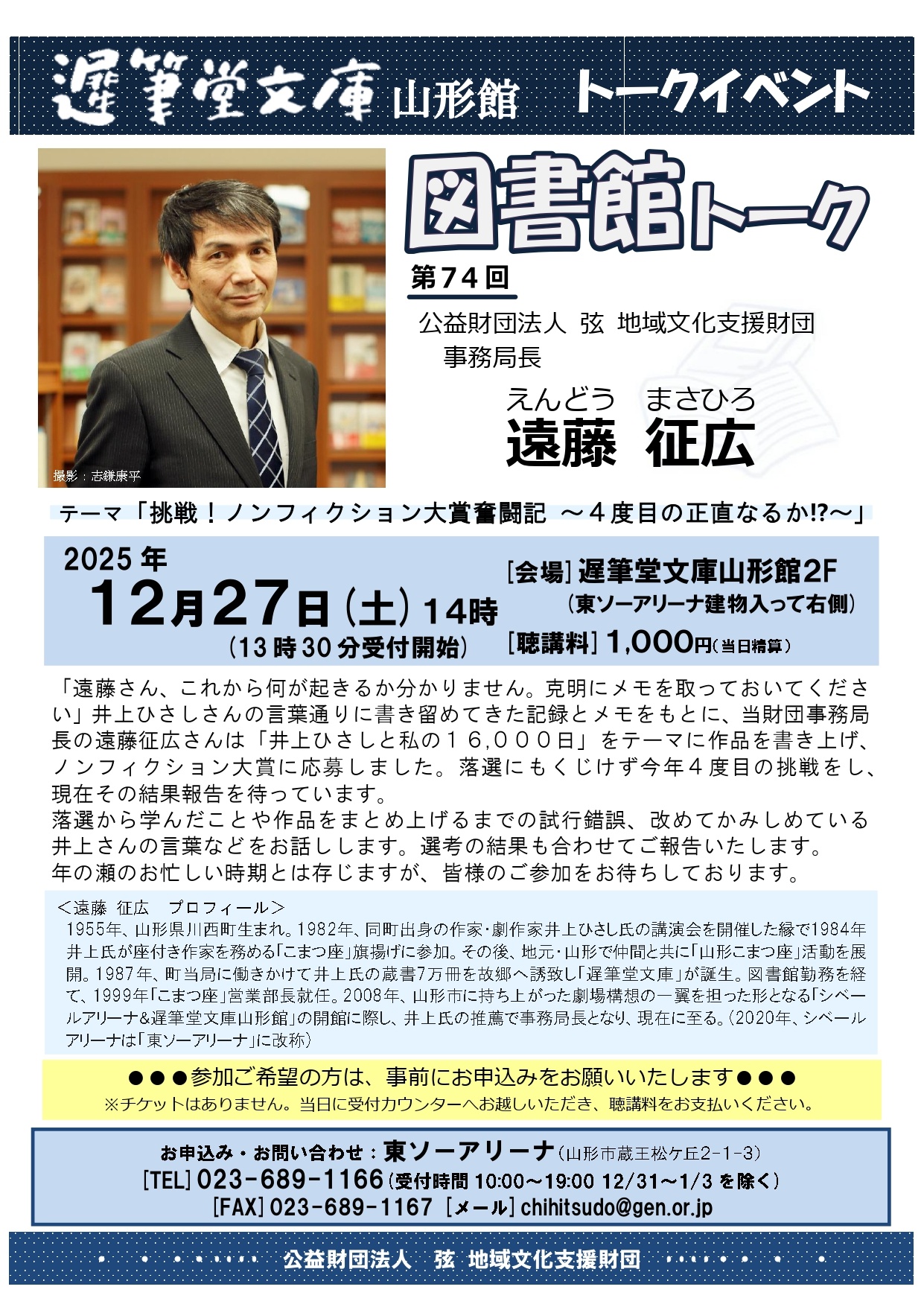 大賞を逃した心境、ノミネート後に最終選考に向けて作品を仕上げるまでの経緯など、今月27日の「図書館トーク」にてお話し